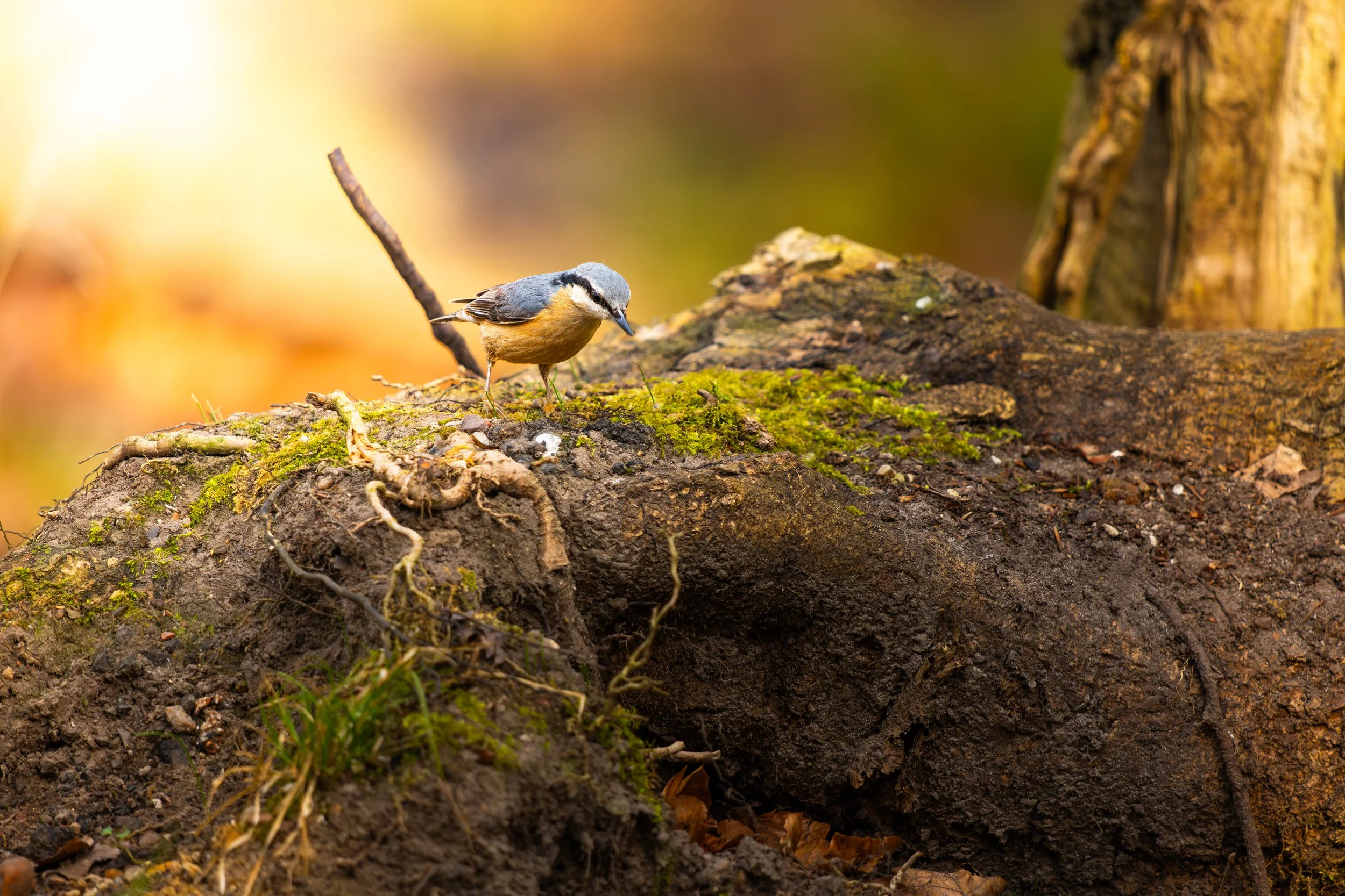 Im Herbst und Winter spielen Samen und Nüsse eine größere Rolle. Diese klemmt er häufig in Rindenspalten ein, um sie mit kräftigen Schnabelhieben zu öffnen.